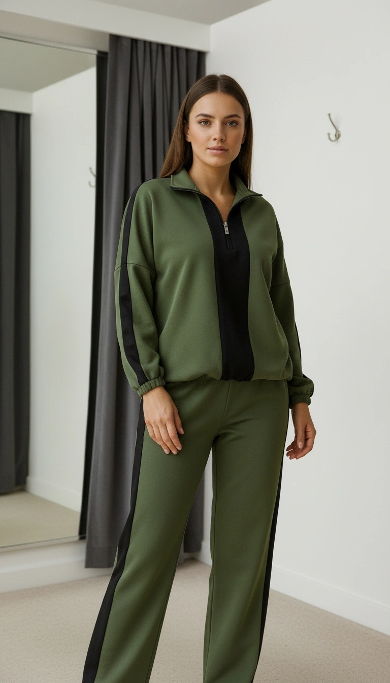 NEFTİYEŞİLİ KAPŞONLU DÜZ TAKIM