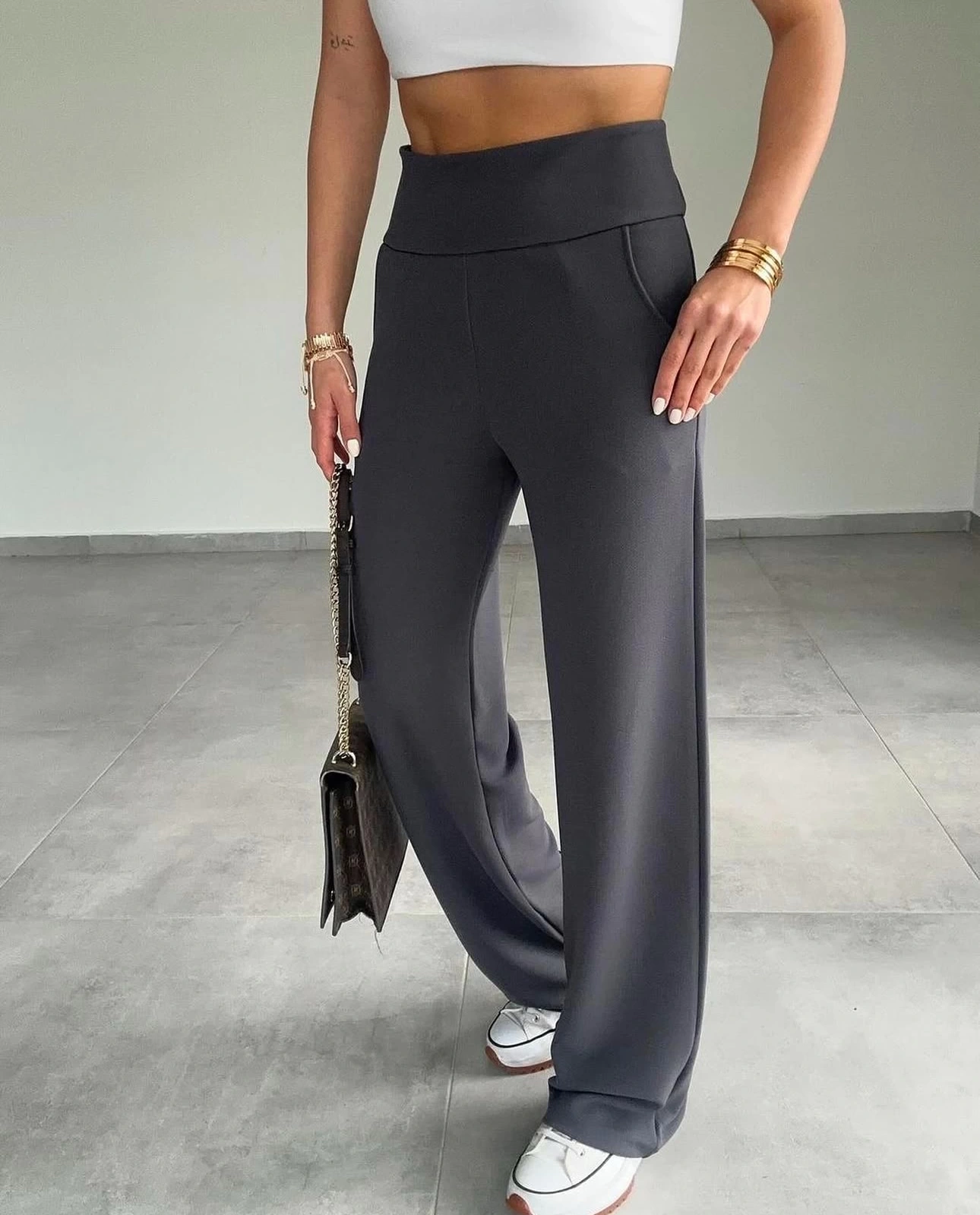 • ENİNE BOYUNA LİKRALI PALAZZO PANTOLON