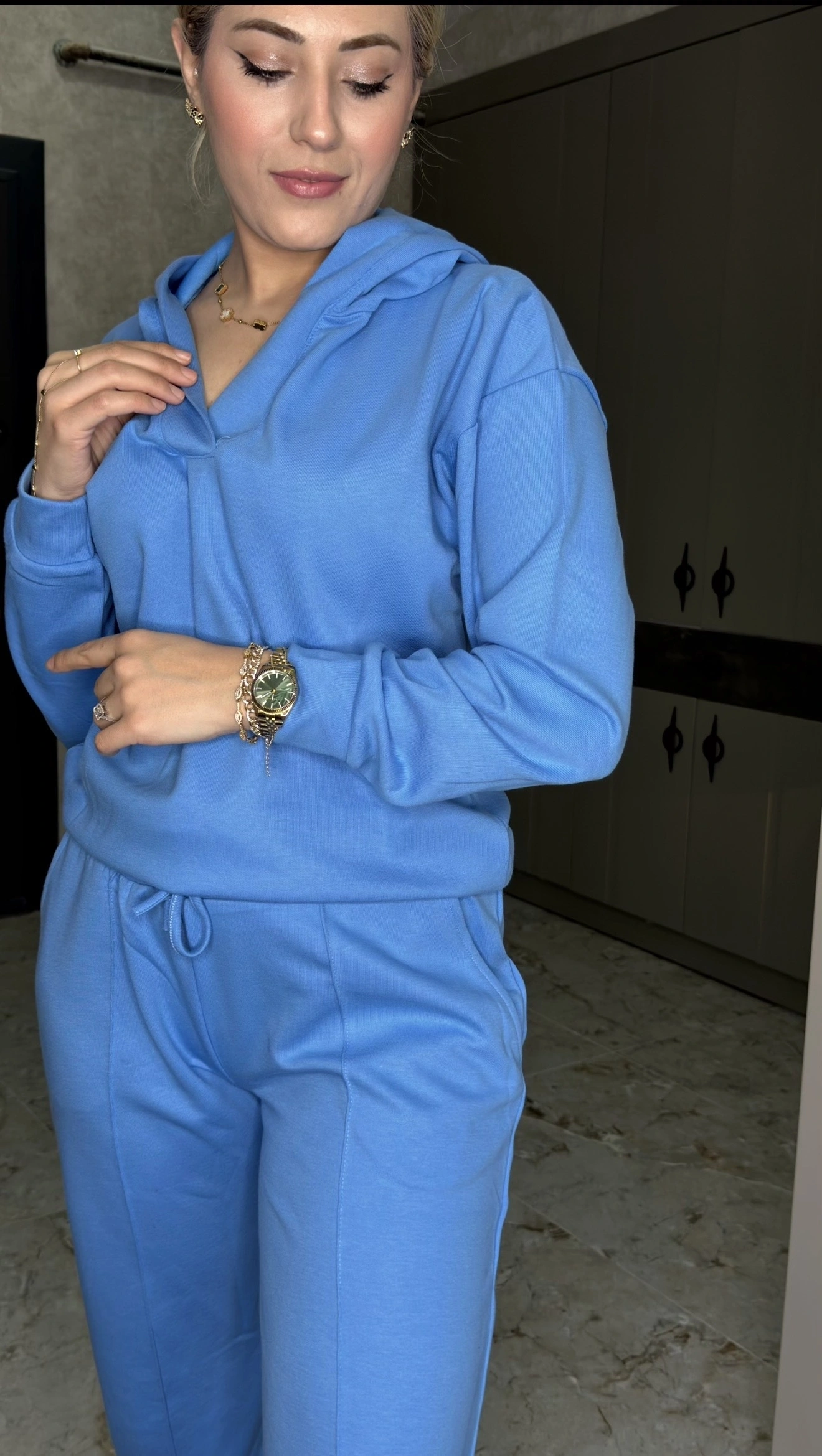 SAX MAVİSİ KAPŞONLU DÜZ TAKIM
