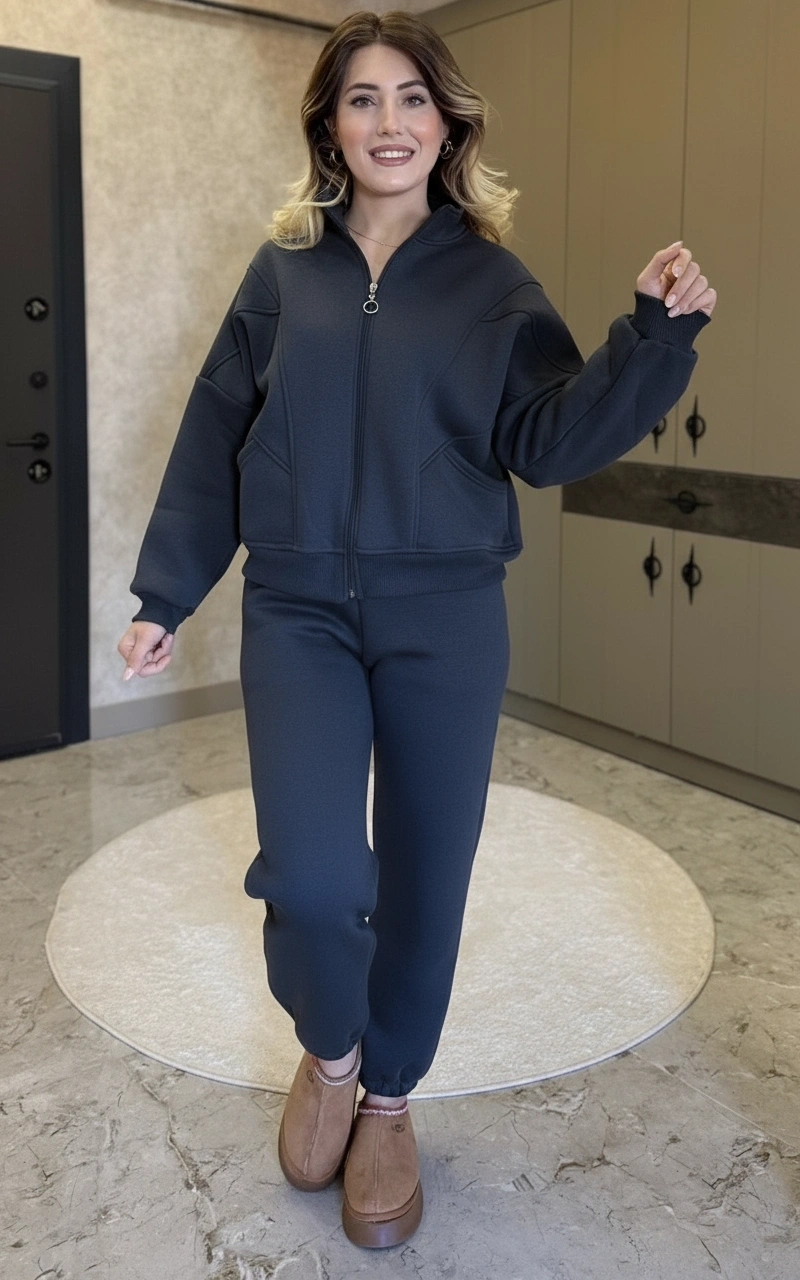 LACİVERT FERMUAR GARNİLİ TAKIM