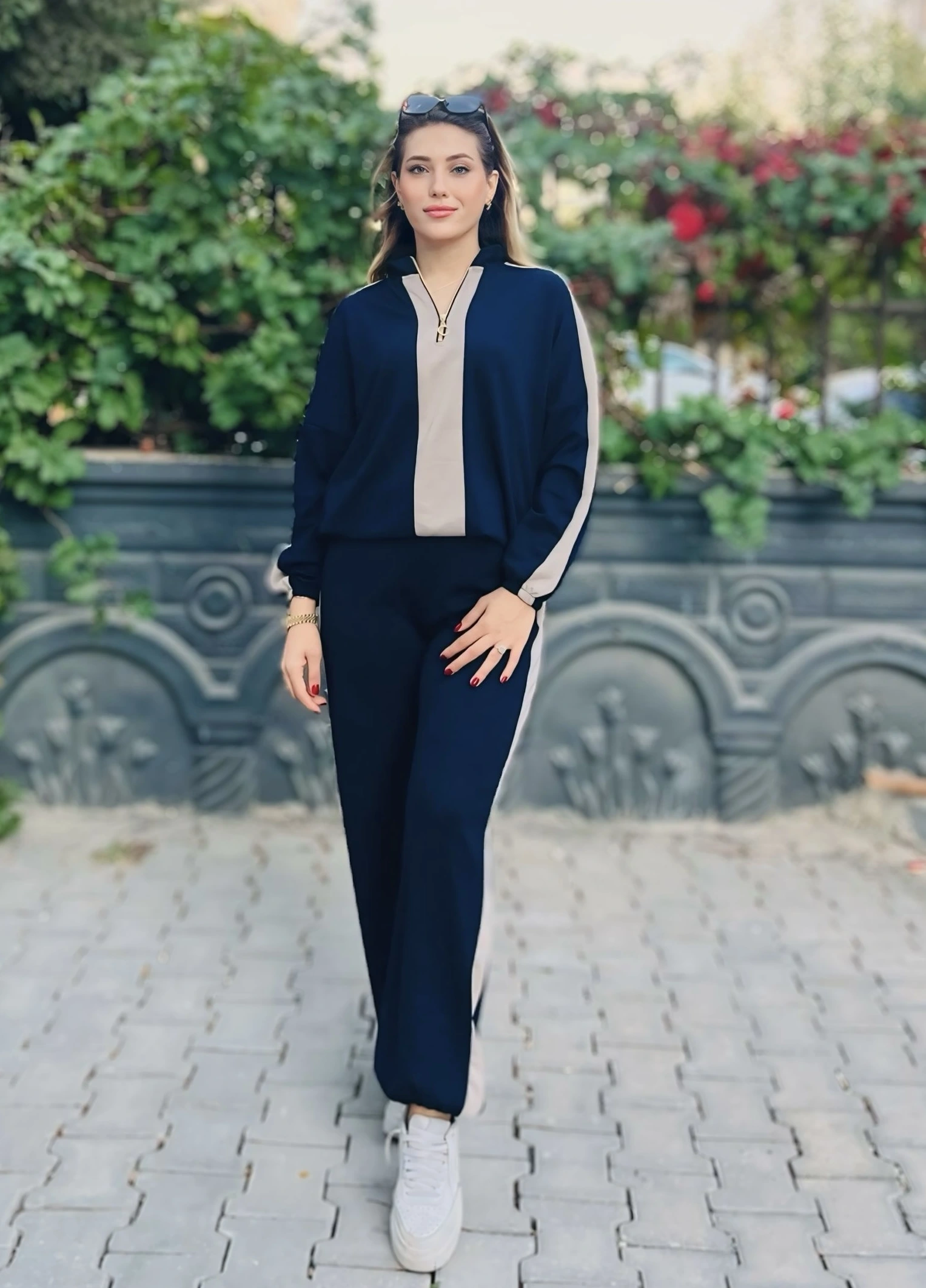 LACİVERT FERMUAR GARNİLİ TAKIM