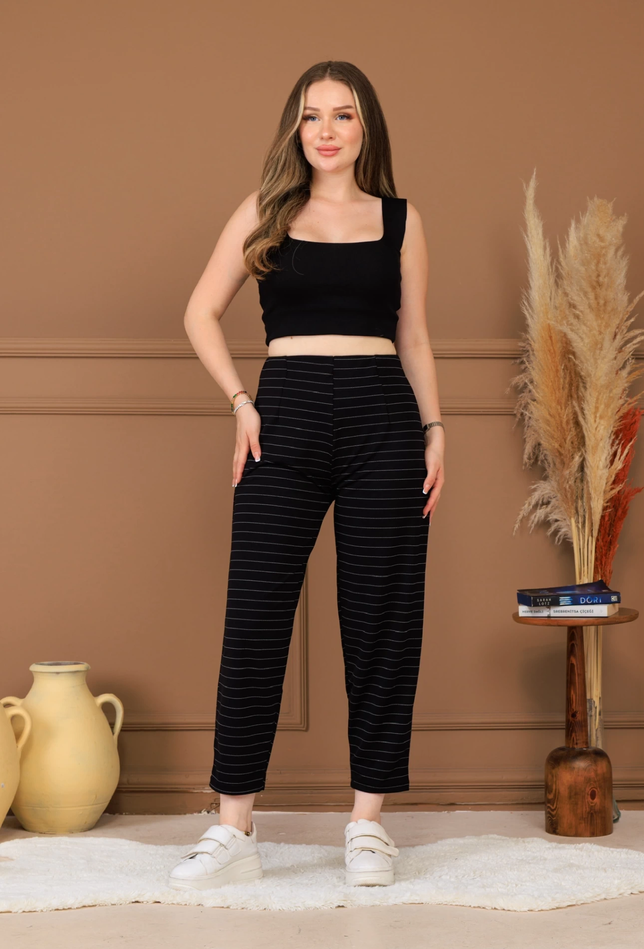 • ENİNE BOYUNA LİKRALI PALAZZO PANTOLON