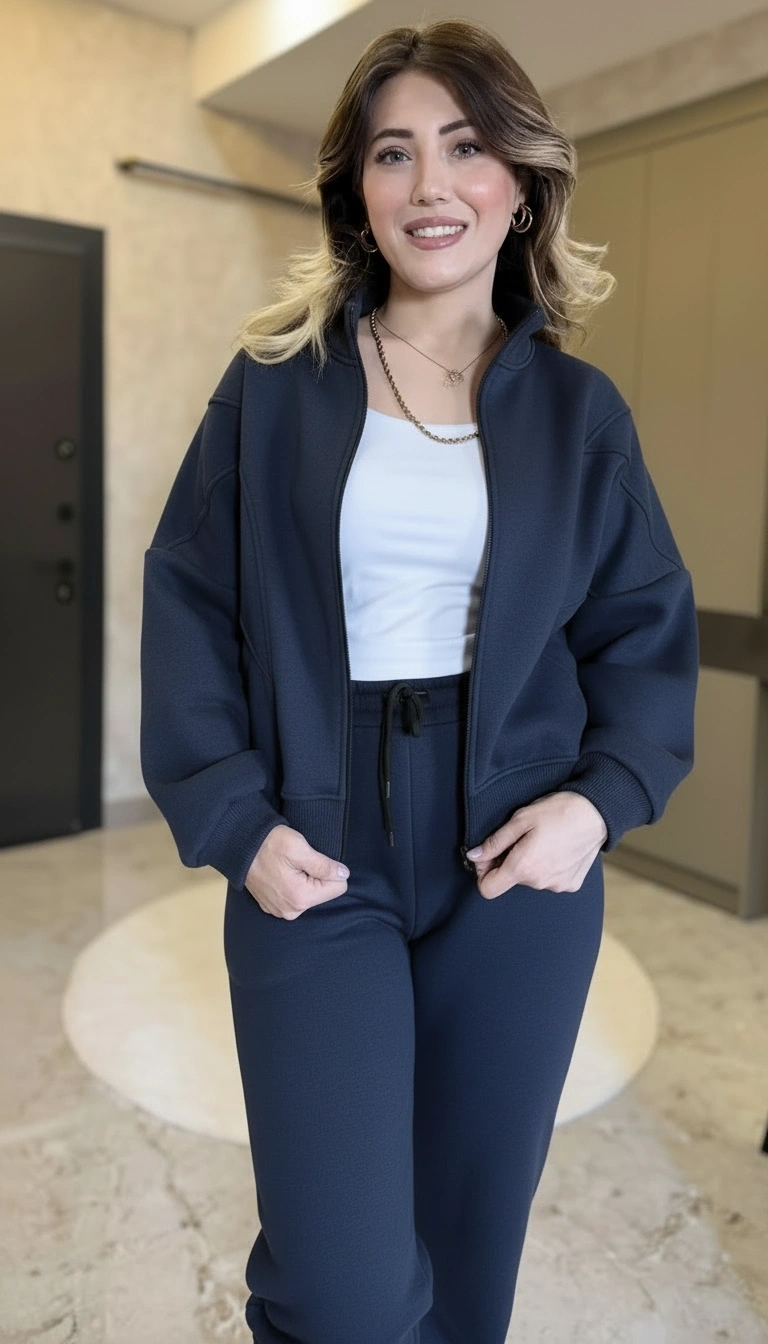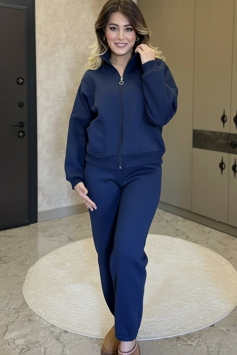 LACİVERT FERMUAR GARNİLİ TAKIM