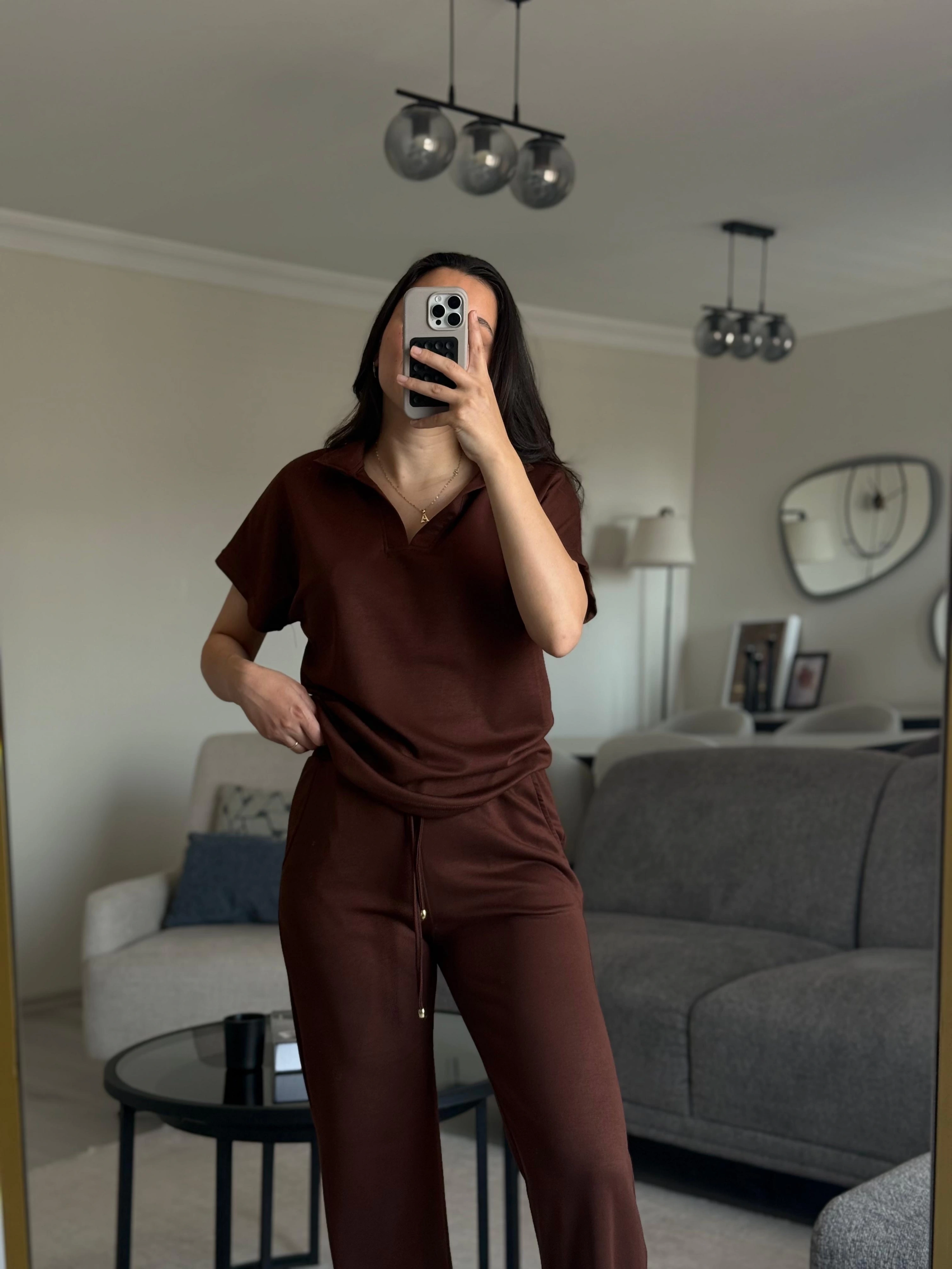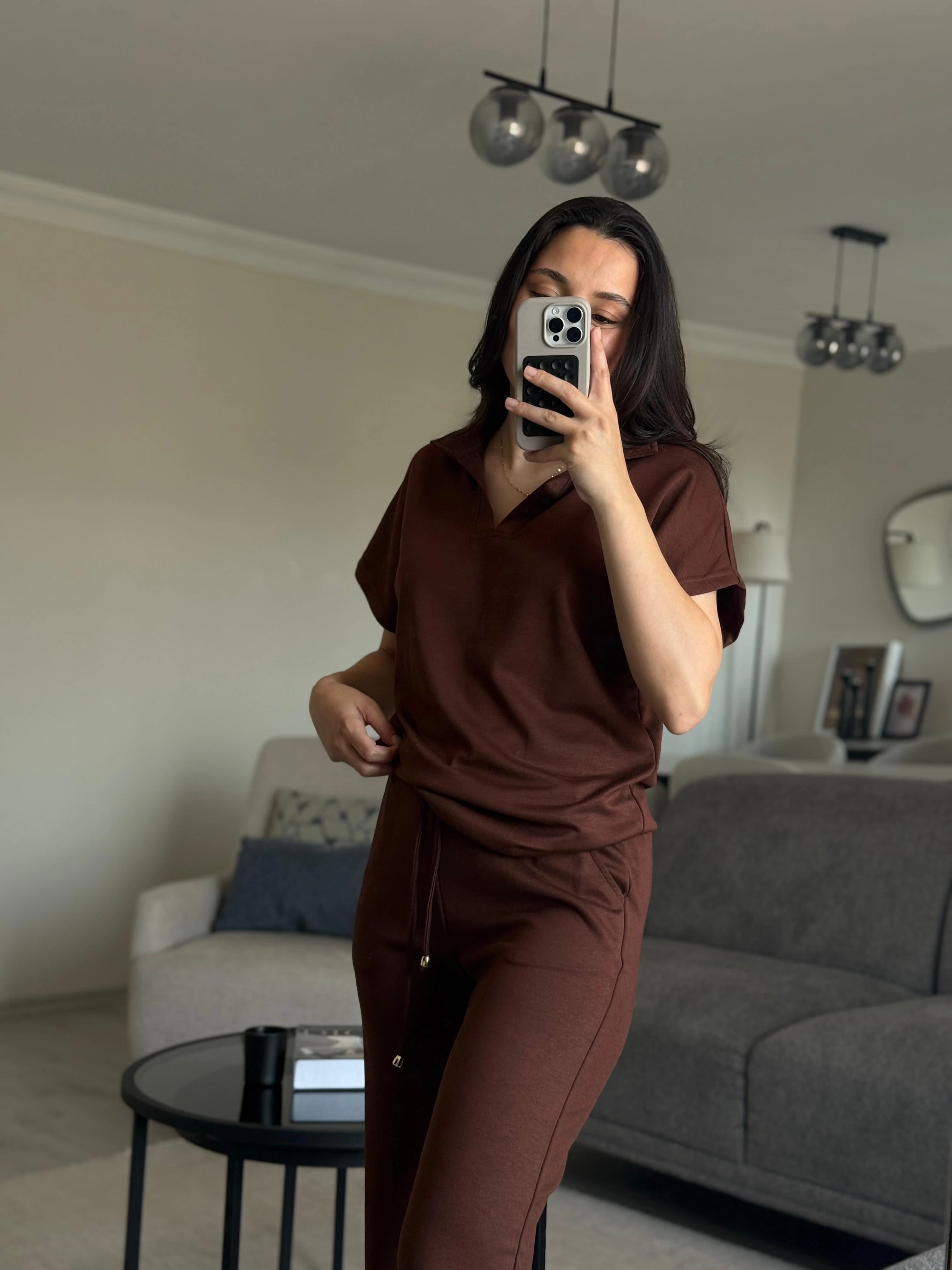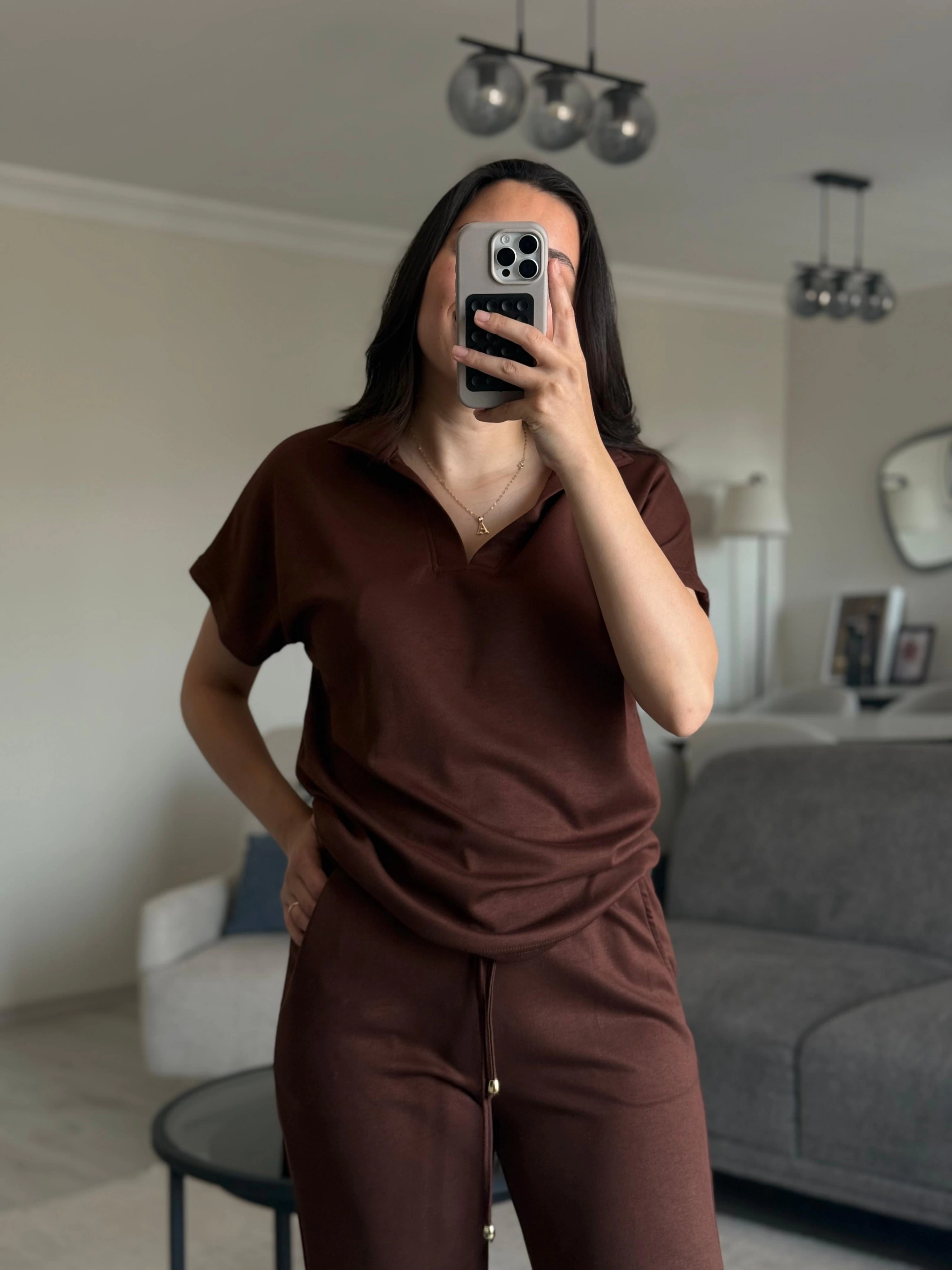 KAHVE OYS MODAL KUMAŞ POLO YAKA